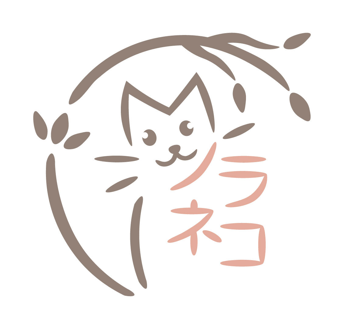 The vertical logo is made up of a floral motif, a cat face, and the Japanese Katakana characters for noraneko - which complete the image of a cat drawing on a sheet of paper.