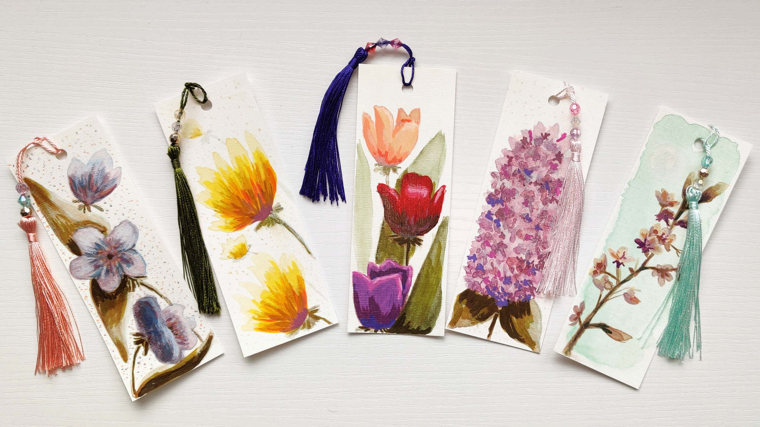 Hand-Painted Bookmarks - Floral Collection